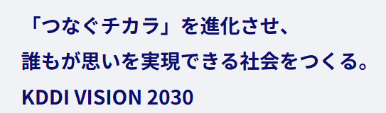 日本におけるネットワークインフラを担う大企業KDDI、皆さんもきっとご存じだと思います。IT社会の現代ではネットワークインフラはなくてはならないものであり、KDDIは自分たちの業務がどれだけ重要なものか理解した上で日本中のネットワークインフラを担ってくれています。また、KDDIはSDGs活動に非常に力を入れており、サステナビリティビジョンとして 「つなぐチカラ」を進化させ、誰もが思いを実現できる社会をつくる。KDDI VISION 2030 というものを掲げて活動されています。