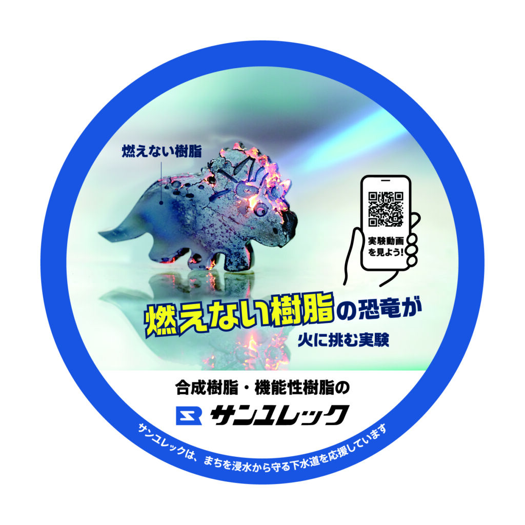 動画では、恐竜に火をつけても燃え広がって形を失うことはなく、炎を遠ざけるとすぐに火が消えていることがわかります。難燃性樹脂は、火災の原因となる電子部品の発火から、製品や建物を守る最終防壁として働いているのです。