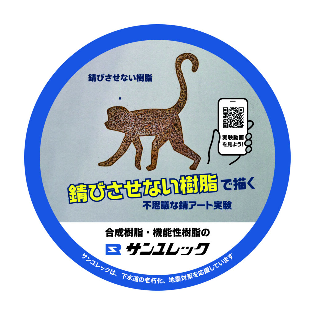 樹脂が塗られていない猿の形の部分はすぐに赤くサビ始めますが、樹脂が塗られた部分は長時間にわたってサビが一切発生せず、樹脂が侵食されることもありません。樹脂が鉄板を守る、「鉄壁の盾」として機能していることがわかります。