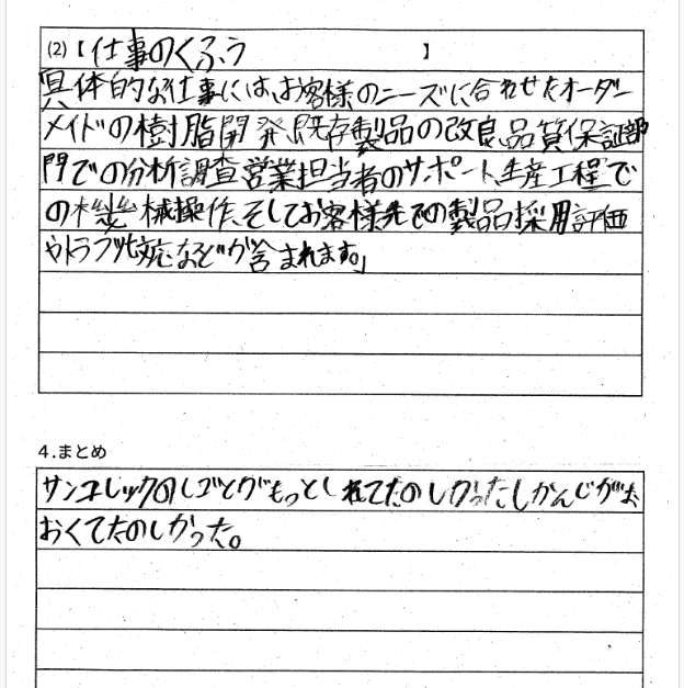 3度の工場見学を通してそれぞれ違った立場からサンユレックの姿を見て感じたのは、家族に自分が働いている会社を見せるという企画をしてくれる会社は素敵だなということです。