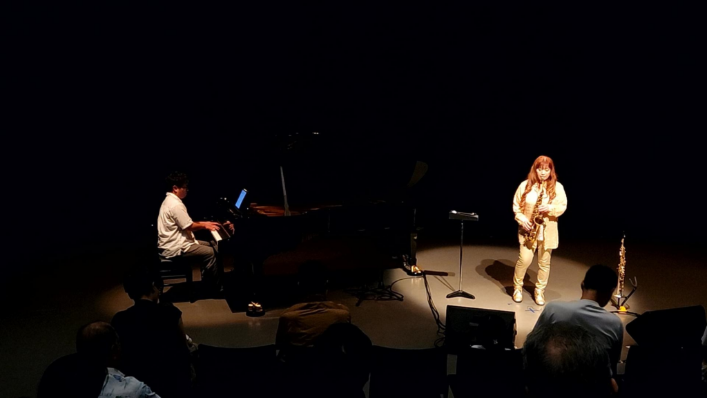 音楽会は三味線にはじまり、バイオリン、サックス、手話歌、といった普段なかなか触れ合う機会が少ない楽器の生演奏を聴くことができ、その音色に会場にいる大人から子供までが魅了されていました。