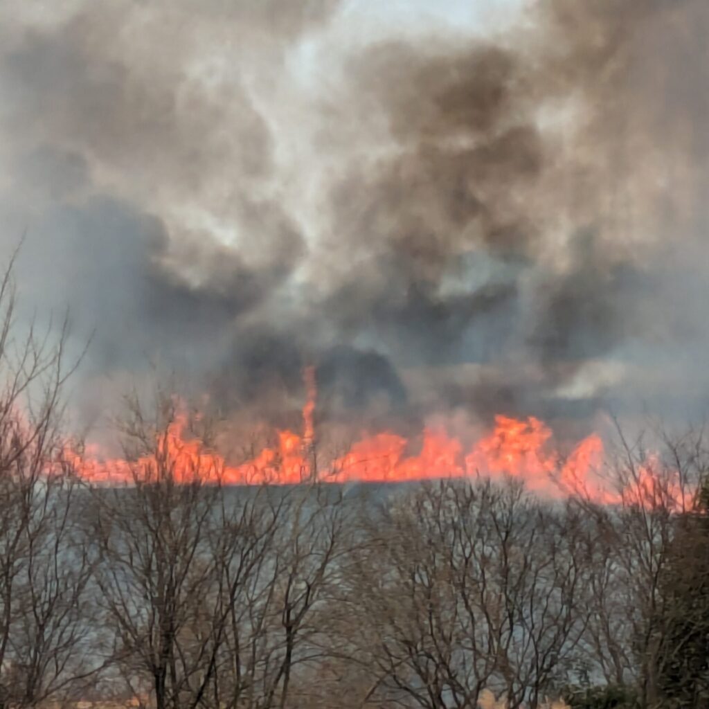 毎年この時期になると行われるヨシ原焼き。