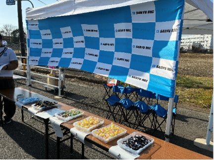 今回は私たちの会社の近くでもある、ハーフマラソンの中間地点くらいにエイドステーションを設営し,応援させていただきました!